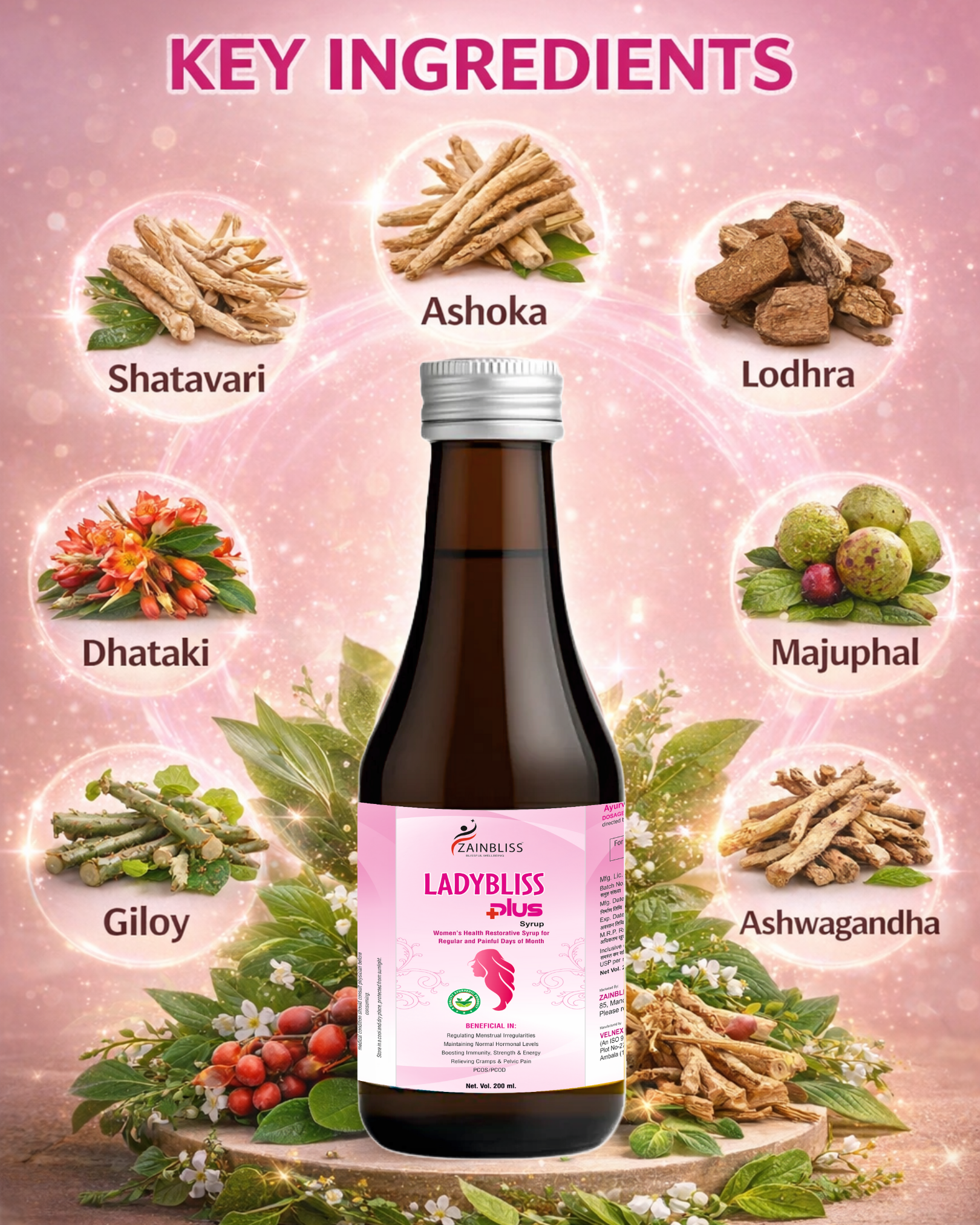 Empower your health with the wisdom of nature. Zainbliss Ladybliss Plus Syrup is an advanced, multi-action Ayurvedic formulation meticulously crafted to meet the complex health requirements of the modern woman. As a potent uterine and restorative tonic, it works holistically to balance hormones, optimize reproductive health, and revitalize overall physical vitality.